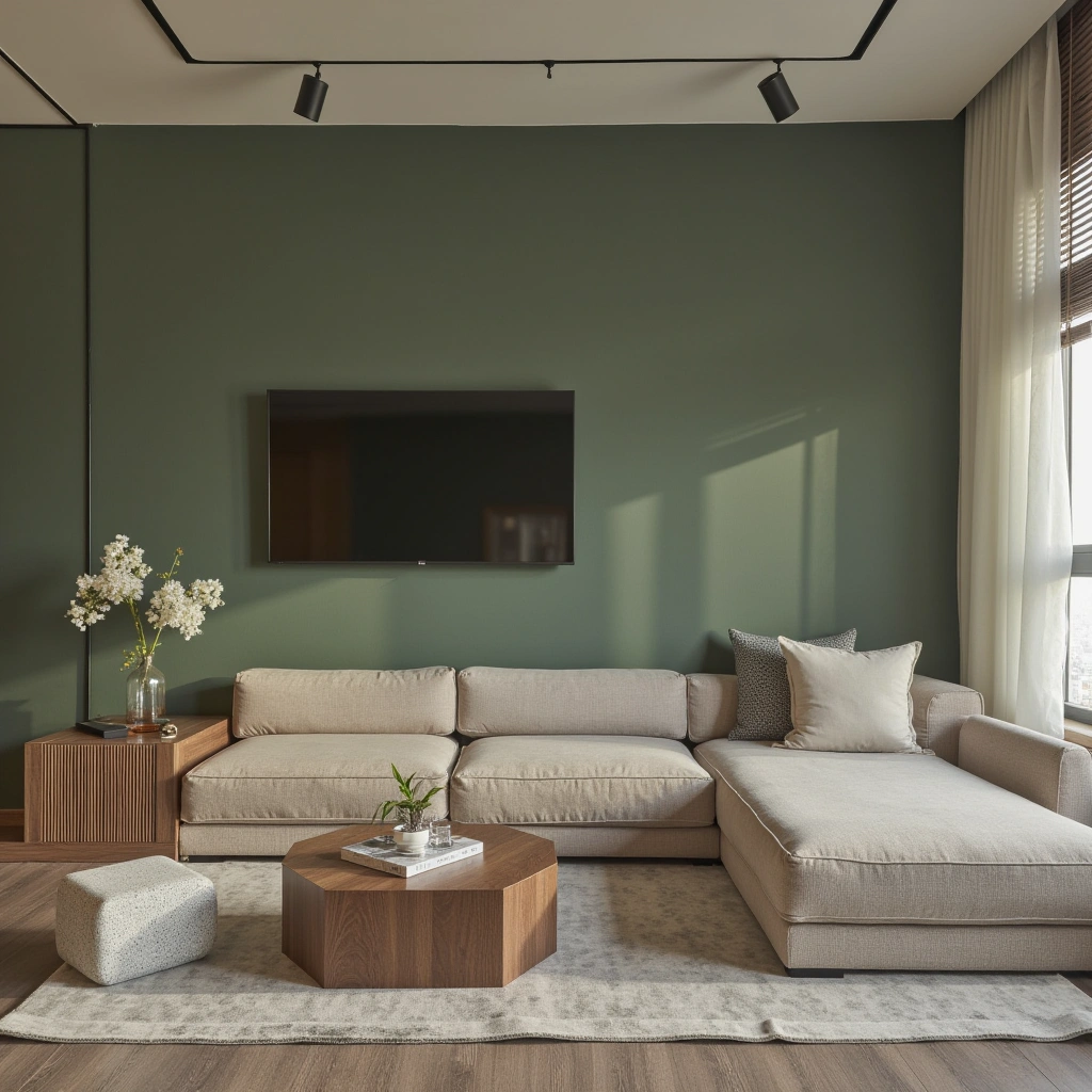 Imagine walking into a living room where the walls are painted in a soft, soothing sage green. This color sets the tone for a minimalist chic aesthetic. To achieve this look, opt for simple, clean-lined furniture in neutral tones. A white or beige sofa, for example, will complement the sage green walls beautifully. Add a few decorative elements, such as a sleek coffee table and a minimalist floor lamp, to complete the look. This design works well in modern and contemporary homes, creating a serene and inviting atmosphere.